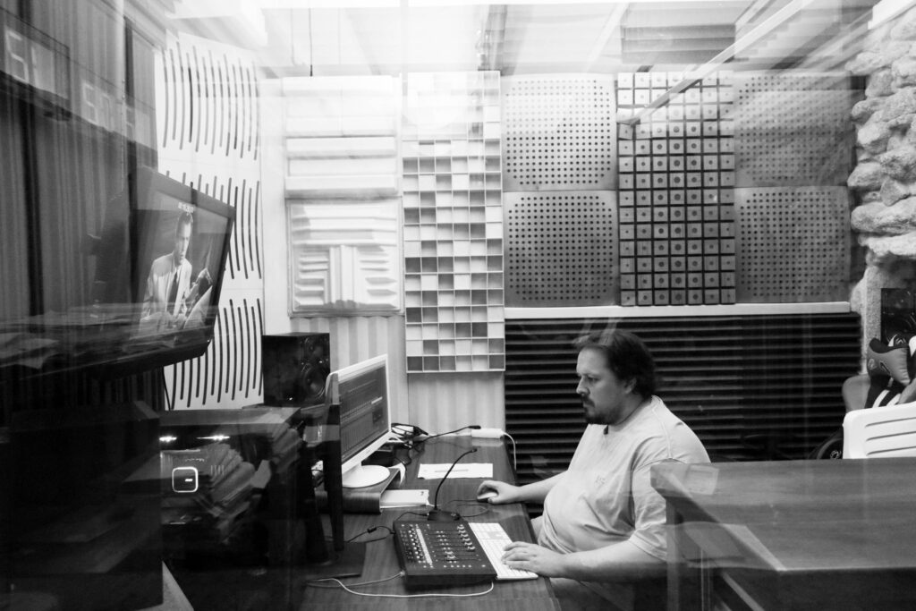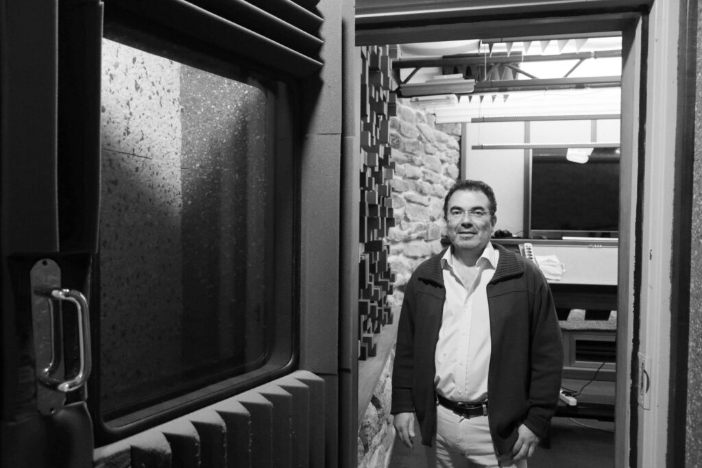 En 2004, en plena expansión de la TDT y los canales temáticos, Polo decidió arriesgar. Primero alquilando salas en un estudio de A Coruña —en un gesto poco habitual entre competidores— y después levantando su propio espacio desde cero. «Esto era un bajo donde guardábamos coches», señala. Entre 2005 y 2007 transformó aquel espacio en un estudio completo, cuidando detalles que había observado durante años: acústica, distribución, tecnología. Desde entonces, Panteo Films no ha dejado de crecer.