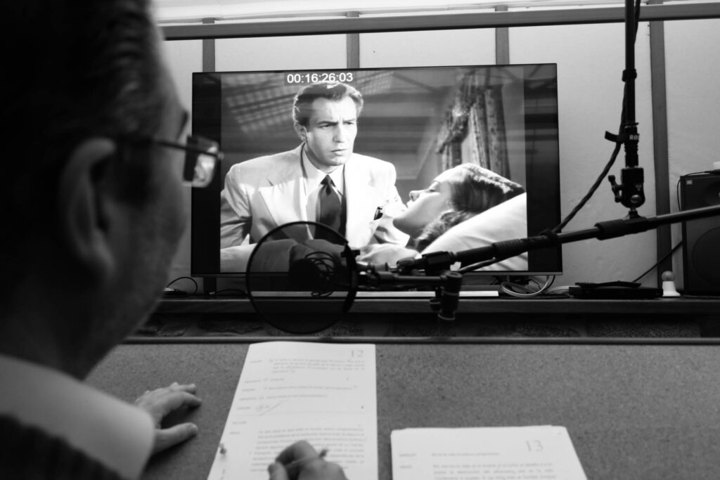 Luego llega la grabación, fragmentada en pequeñas tomas de segundos. Los actores trabajan sin red: leen, interpretan, sincronizan y repiten en cuestión de minutos lo que el actor original pudo preparar durante meses. «A las ocho de la mañana te puede tocar llorar desconsoladamente o gritar en una guerra», explica. La emoción no se ensaya: se activa.